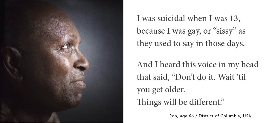 I was suicidal when I was thirteen. Because I was gay, or “sissy” as they used to say in those days. I was actually planning how I was gonna do it, and I heard this voice in my head that said, “Don’t do it. Wait ‘til you get older. Things will be different.” I was thirteen, so I said, “Okay, I’ll wait another thirteen years, and if it’s not different, I’ll do it then.” Turned out to be a lot different, okay? So I’ve always sort of looked at life as, like, watching a movie? So it’s like, “Okay, well, what’s gonna happen next? What’s gonna happen next?” So when I turned positive, I wasn’t that stressed out. Because for all practical purposes, I should have been dead years ago, had I killed myself, so it was like anything that comes after that is not gravy, but you know… So, I wasn’t that upset. Plus, I knew the life I led.